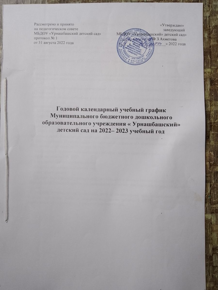 Календарный план воспитательной работы МБДОУ "Урнашбашский детский сад общеразвивающего вида " Карлыгач"на 2022-2023 учебный год.