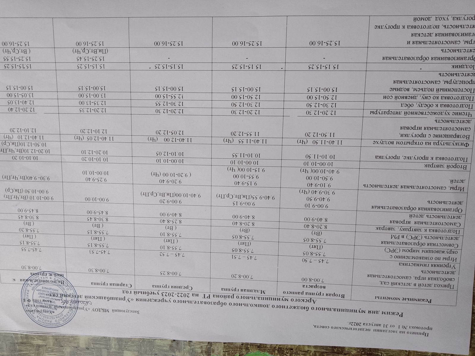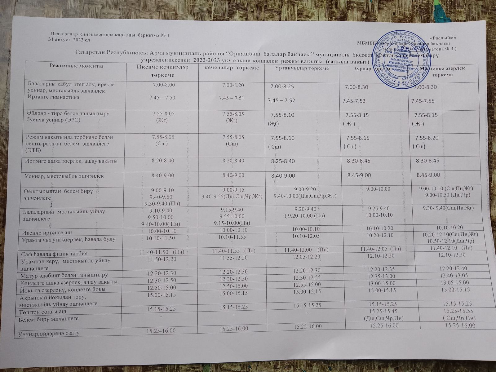 Распорядок дня на 2022-2023 учебный год (холодный период)
