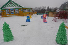На игровую площадку детского сада пришла зима, а вместе с ней сказка. Появились любимые детьми герои сказок, которые каждый день встречают и радуют детей и их родителей.