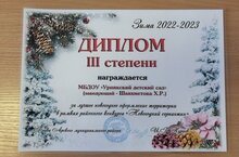 Наш детский сад был награжден дипломом III степени за лучшее новогоднее оформление территории в рамках районного конкурса "Новогодний серпантин". Поздравляем!!!