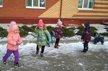 Во время прогулки с воспитанниками наблюдали за первым выпавшим снегом, обменивались впечатлениями. Дети были рады первому снегу! Прогулки и игры на свежем воздухе всегда доставляют детям массу удовольствий, укрепляют здоровье.