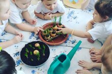 Суганның үзенчәлекләре, файдалы сыйфатлары һәм аны үстерү технологияләре турында балаларның күзаллауларын киңәйтү максаты белән, урта төркемендә суган утырту буенча балалар белән уртак хезмәт эшчәнлеге оештырылды. Балалар суганда С витаминын булуын һәм алар төрле чирләрдән, бигрәктә грипп һәм салкын тиюдән саклавын белделәр.