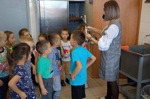 Воспитанники старшей группы побывали на кухне детского сада. Воспитатель познакомил детей с профессией повар. Они узнали об обязанностях работников кухни, какими приборами они работают, как хранится продукция пищеблока, как готовят их любимую кашу.