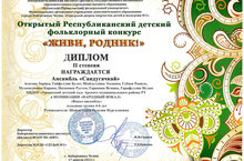 Ансамбль нашего детского сада участвовал в республиканском детском фольклорном конкурсе "Живи, родник!" и был награжден дипломом II степени. Поздравляем!!