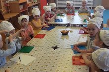 Пекли пироги мы все вместеДа так, что испачкали носики в тесте