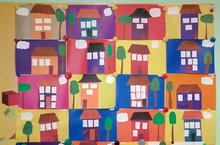 На занятии аппликации воспитанники старшей группы закрепили умение изображать здания, используя приёмы вырезывания одинаковых деталей из бумаги, сложенной в несколько раз, дополнили картину улицы готовыми деталями (деревья, облака, трава). Занятия аппликации воспитывают усидчивость, самостоятельность, умение доводить начатое дело до конца.