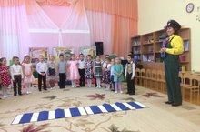 В детском саду прошло мероприятие по ПДД "Важные уроки по правилам дороги", на котором присутствовала начальник отдела профилактики ГБУ "БДД" по Арскому району Мухаметзянова Э.Г. К детям заглянул Светофор Светофорович Мигалкин. Он проверил детей - на сколько они знают правила дорожного движения. В конце мероприятия Энже Газизовна вручила всем воспитанникам и детскому саду подарки.