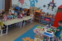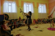 К нам в детский сад со своим цирковым представлением приехал выездной цирк "Овация". Артисты выступили со своими лучшими номерами. Это была и клоунада, фокусы, номера с дрессированными голубями, собачкой, кроликом и удавом. Дети от представления были в восторге!