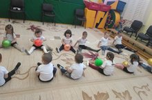 На занятии по физкультуре воспитанники младшей группы выполняли упражнения с мячом. Эти упражнения развивают мелкие и крупные мышцы, увеличивают подвижность суставов пальцев и кистей, усиливают работу важнейших органов организма, нормализуют эмоционально-волевую сферу.