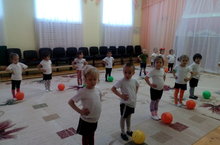 Воспитанники средней группы на занятии по физкультуре выполняли упражнения с мячом. Эти упражнения развивают мелкие и крупные мышцы, увеличивают подвижность суставов пальцев и кистей, усиливают работу важнейших органов организма - легких, сердца, улучшают обмен веществ. При ловле и бросании мяча действуют обе руки, что способствует гармоничному развитию центральной нервной системы и всего организма.