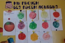 Уртанчы төркем балалары гуашь буяулары белән төрле төстәге алма ясарга өйрәнделәр. Контурга кермичә буяуны ныгыттылар, рәсемне тулы биткә урнаштыру күнекмәләре булдырдылар. Балаларга шөгыль бик ошады.