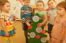 Вот и пришло время прощаться с ёлочкой. Дети с удовольствием, но вместе с тем и с грустью спели новогодние песни, водили хороводы.Затем простились с любимой ёлочкой, попросили её и на следующий год прийти такой же нарядной и яркой. До свидания, ёлочка, не грусти без нас!