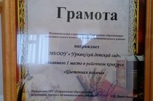 На мероприятии, посвященном Дню учителя, который прошел 8 октября в РДК Арского района, наш детский сад был награжден грамотой муниципального учреждения "Управление образования" исполнительного комитета Арского муниципального района за 1 место в районном конкурсе "Цветочная поляна". Поздравляем!