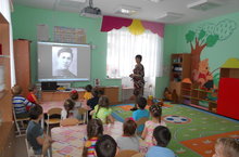 Сегодня в гости пришла библиотекарь МБУ «Арская ЦБС» Лесхозской сельской библиотеки Раушания Ибрагимовна. Вместе с детьми старшей группы познакомились с биографией поэта-героя М.Джалиля, посмотрели фильм «Историческая память поэта Муса Джалиля». Библиотекарь провела выставку книг поэта и в память о нём подарила детям книгу с его стихами.