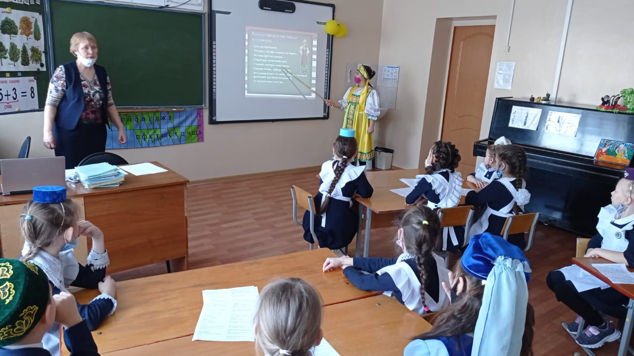 Туган телебезнең җәүһәре - милли геройга әверелгән шәхес Г.Тукайның иҗаты белән якыннан таныштыру һәм татар халкының милли йолаларына, туган телебезгә мәхәббәт тәрбияләү максатыннан, 1 нче сыйныф укучылары өчен “Габдулла Тукай әкиятләре буйлап” исемле сыйныф сәгате үткәрелде. Чара барышында “Шүрәле” һәм “Су анасы” командалары көч сынаштылар. Г.Тукайның татар һәм рус телләрендә иҗат ителгән әсәрләре буенча әкият геройларын атадылар, аудиоязма әсәрләрен тыңладылар, татар халкының мәкаль –әйтемнәре буенча конкурс биремнәрен башкардылар. Бу чара балаларда ике телне- рус һәм татар телләрен белү кирәклеген аңларга, ике халык мәдәниятенә хөрмәт хисләре тәрбияләргә булышты, иҗади активлыкларын арттырды. Сыйныф сәгатендә күтәренке күңел, яхшы кәеф хөкем сөрде. -