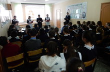 В субботу, 13 апреля, в рамках Всероссийской акции «100 баллов для победы» была организована встреча с выпускниками высокобальниками Нуриевой Адилей и Гариповой Залидой. Они поделились секретами успешной подготовки к ЕГЭ по русскому языку с обучающимися 11 класса.