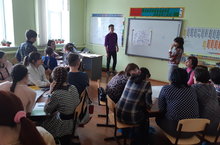 21 марта в школе прошел День Казанского национального исследовательского технологического университета. К нам приехала большая группа преподавателей КНИТУ: В.П.Мамыкина, заместитель декана ИРНО, М.К.Азизова, ст.преподаватель кафедры неорганической химии, О.Б.Марвин, доцент ФДП, С.Н.Савельев, доцент кафедры «Инженерная экология», А.А.Осипов, преподаватель кафедры высшей математики. Для обучающихся 8-11 классов преподаватели провели мастер-классы по математике, физике, химии, экологии. Также преподаватели рассказали о самом университете, о различных направлениях деятельности ВУЗа, подробно остановились на правилах приема, специализациях. «Мы практикуем визиты преподавательского состава ВУЗа в районы республики. Прежде всего, для того, чтобы ребята знали о нашем учебном заведении, так как не у всех есть возможность добраться до Казани», − считает Валентина Павловна.