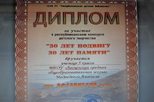 Обучающиеся нашей школы приняли активное участие в Республиканском конкурсе детского творчества «30 лет подвигу, 30 лет памяти», посвященном 30-летию вывода советских войск из Афганистана. Организаторы конкурса военный комиссариат РТ, Республиканская детская библиотека, Татарстанское отделение Всероссийской общественной организации ветеранов «Боевое братство». Ребята в своих сочинениях написали о своих родных и земляках, выполнивших свой интернациональный долг в Афганистане, выразили свое отношение к особенностям службы интернационалистов. По итогам конкурса Закирова Раиля (5б кл.), Медведева Ангелина (5а кл.), Шайхуллина Зифа (6 кл.) награждены Дипломами ГБУК РТ «Республиканская детская библиотека», Хасанова Алина (8 кл.) – сертификатом участника. Поздравляем! Желаем дальнейших творческих успехов!