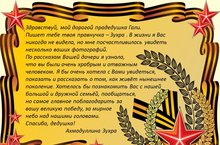 В рамках Республиканской добровольческой акции «ДоброГод» накануне празднования Дня победы 23 апреля ученики 7 класса побывали в гостях у ветерана Великой Отечественной войны Зиннурова Гарафетдина Зиннуровича (д.Культесь). Они поздравили его с наступающим праздником. Гарафетдин Зиннурович рассказал детям о трудных, суровых военных временах, поделились воспоминаниями о тех чувствах, которые испытали в великий День Победы - 9 мая 1945 года. Ребята с интересом послушали рассказ о жизни в годы войны, а в завершение встречи пожелали ветерану здоровья, бодрости духа и мирного неба над головой. «То, что было услышано, не пройдет бесследно, останется в юных сердцах детей. Такие встречи школьников с ветеранами воспитывают патриотизм, уважительное отношение к заслуженным людям, вызывают чувство милосердия и желание быть полезными не только в праздничные дни, но и повседневно...»,- отметила классный руководитель И.Д.Зиннатова.
