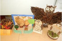 Природа - неиссякаемый источник творчества и вдохновения. Ежегодно в школе проходит выставка поделок из природного материала «Осенняя фантазия». Обучающиеся школы приняли участие в этом празднике творчества. Фантазии не было предела! Это и «Совы, большие головы» (2, 3, 4 классы), сюжетная поделка с использованием природного материала (1 класс), сплетенная корзинка из сосновых шишек (8 класс). В результате получились оригинальные поделки, материалом для которых послужили шишки, листья, рябина, мох и многое другое. Как радостно, что и родители не остались равнодушными и приняли активное участие в изготовлении таких замечательных работ. Конкурс требовал от ребят проявления выдумки, умения работать с различными природными материалами. Сколько радости и восторга подарили всем авторы этих удивительных работ!