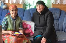 Хөрмәтле тыл ветераны Рахматуллина Суфия апаны якынлашып килүче 8 нче март бәйрәме белән котладык .