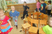 “Урындыклар”. Көй башлануга урындыклар тирәли бииләр. Көй туктауга урындыкка утырып калырга тиешләр, урындыксыз калган уенчы уеннан чыгарыла (урындыклар саны уенчылар саныннан бергә ким алына).