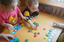 Цель:развивает внимание,умение сравнивать,точно определять и подбирать,а также координацию движений рук.В процессе игры дети знакомятся с понятиями”Форма” и “Цвет”.