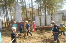 Бүген без балалар бакчасында, уен мәйданчыгын җыештырдык.