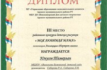 Поздравляем Юнусова Тамерлана с 3 местом в районном конкурсе рисунков "Моя любимая мама" 24.12.2020