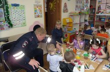 Сегодня мы провели развлечение по обучению ПДД с приглашением начальника Арского филиала "Дирекция финансирования программ БДД РТ" Мухаметзяновой Э.Г. и госинспектора БДД ОГИБДД ОМВД России по Арскому району ст. лейтенанта полиции Хакимова Р.Р. Дети повторили правила поведения на улицах города, в общественном транспорте. В конце занятия дети раскрашивали гипсовые фигурки транспорта и получили подарки от гостей мероприятия.