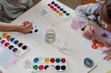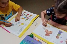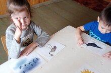 Рэсем эшчэнлегендэ балалар краскалар белэн бигерэк тэ яратып эшлилэр.