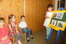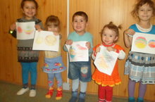 Рәсем эшчәнлегеннән соң кечкенә һәм уртанчы төркем балалары үзләренең иҗат җимешләре белән.Эшчәнлек барышында балалар карандаш белән тигез, матур ,читкә чыгармыйча буяу осталыкларына өйрәнәләр,. матурлыкны тудыра белергә, иптәшләренең эшләренә анализ ясарга өйрәнәләр
