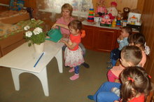 Балаларга бүлмә гөлләре өчен кирәкле шартлар тудыру турында мәгълүмат бирү; аларга яктылык, ашлау, җылылык, һава кирәклеген аңлату. Бүлмә гөлләренең дә, тере икәнлекләрен күзаллау. Гөлләр үстерүгә кызыксыну һәм теләк уяту.