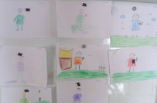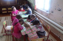 Рәсем сәнгате шөгылендә балалар үзләренең әниләренең рәсемнәрен ясадылар.