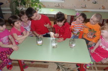 Балалар белән тал,каен,шомырт агачларының ботакларын суга утырттык.Хәзер көн саен кайсы агач беренче яфрак яруын күзәтәбез.