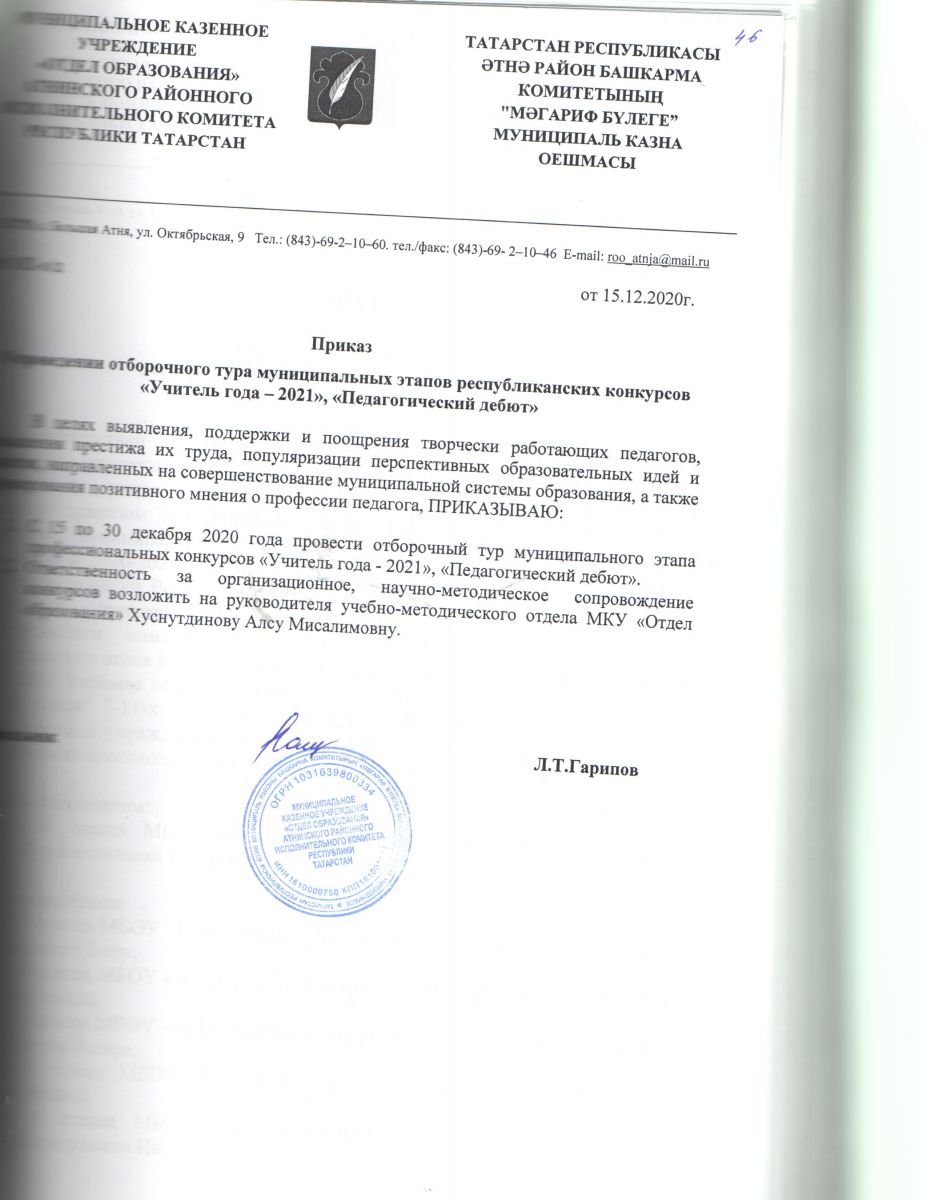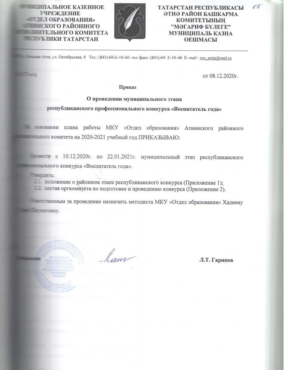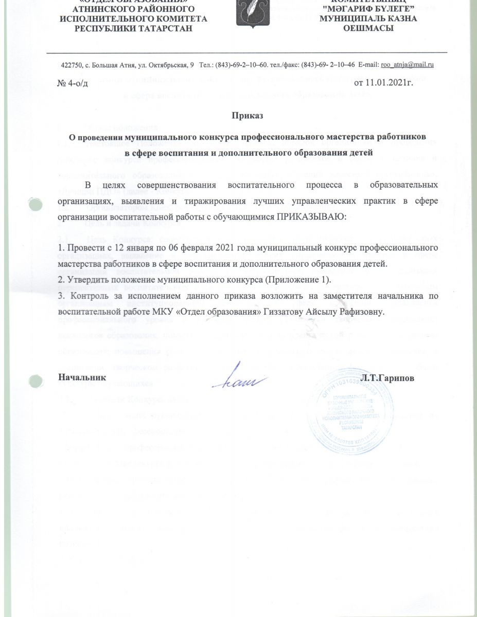 Приказ о проведении муниципального этапа республиканского конкурса Воспитатель года