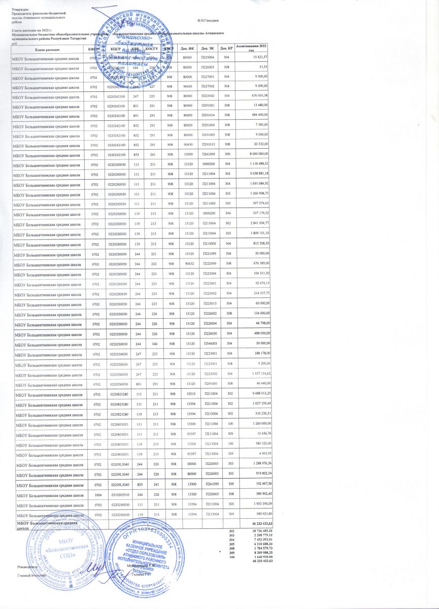 Смета расходов на 2022 год