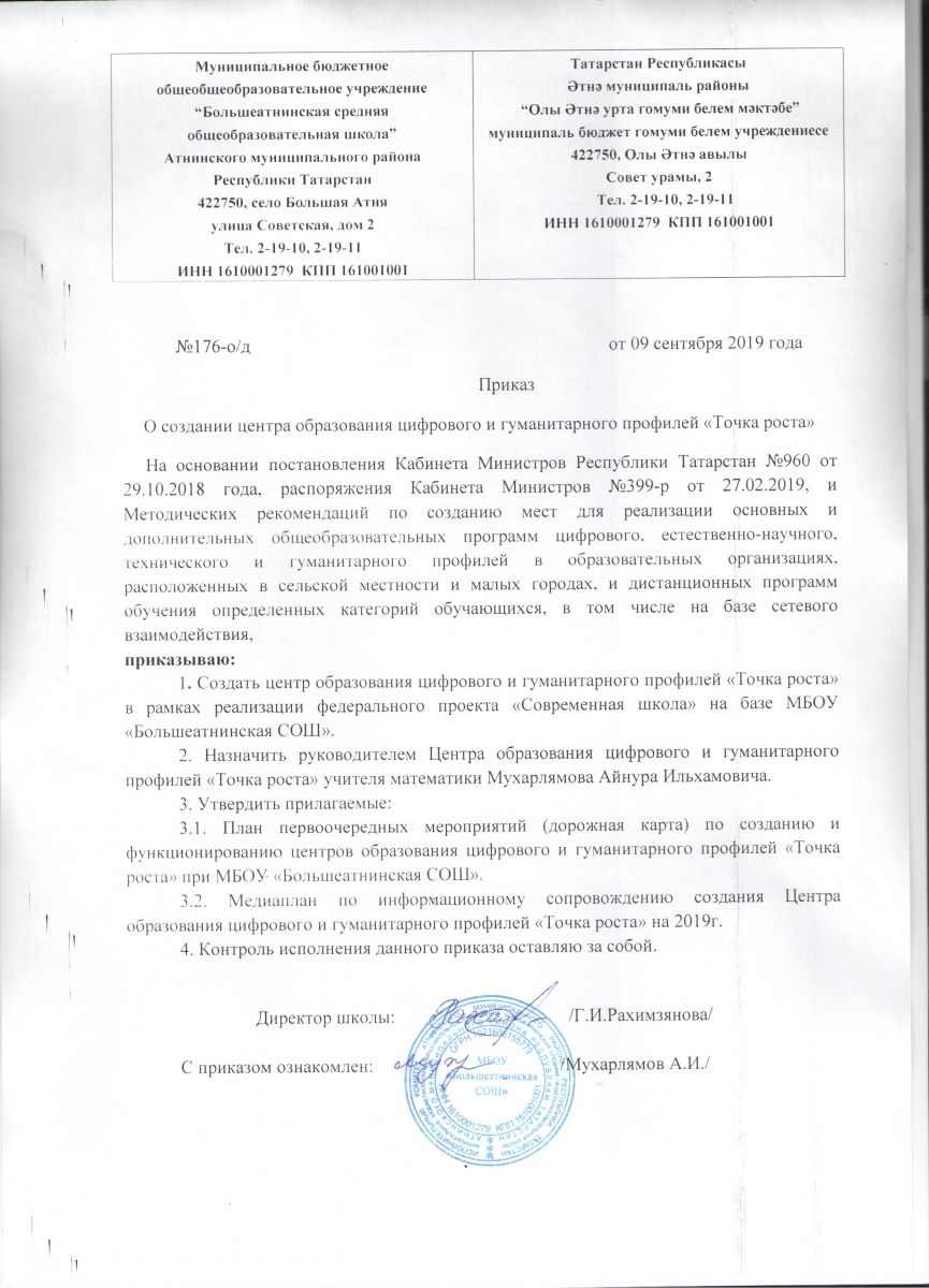 Приказ об утверждении Типового положения о "Точка роста" на территории Республики Татарстан
