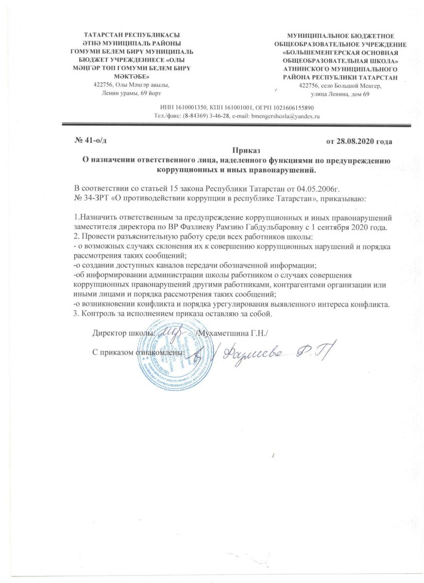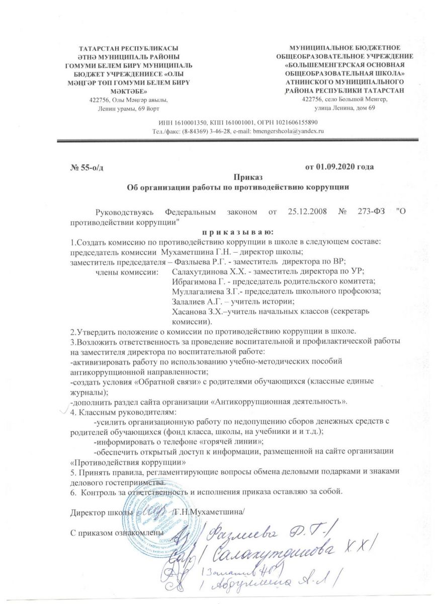 Положение об антикоррупционной политике в МБОУ "Большеменгерская ООШ".