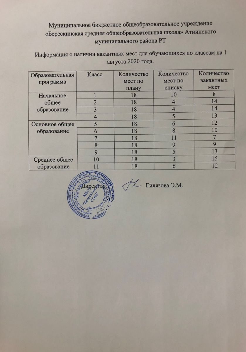 Муниципальное бюджетное общеобразовательное учреждение «Берескинская средняя общеобразовательная школа» Атнинского муниципального района РТ