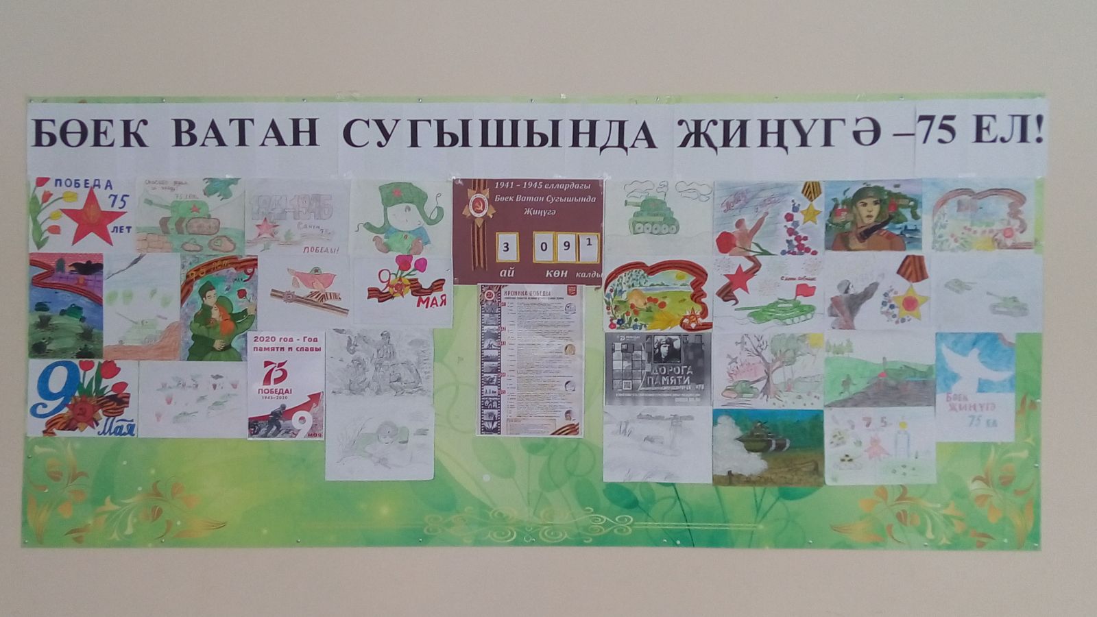 Опубликовано: 25.02.2020Бүген Бәрәскә урта мәктәбендә Бөек Җиңүнең 75 еллыгына багышланган рәсем конкурсына нәтиҗәләр ясалды. Җиңүчеләр грамоталар белән бүләкләнделәр.
