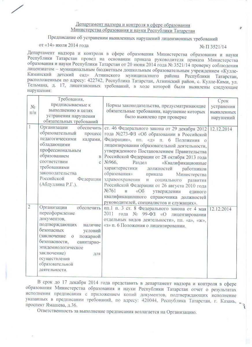 Предписание об устранении нарушений № П 57/19-Д-ГН от 18.03.2019