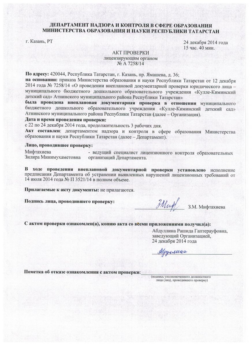 Акт плановой проверки пожарного надзора №59 от 13.07.2020 года