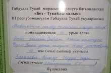 ""Без-Тукайлы халык" III нче республикакүләм Габдулла Тукай укуларыныда катнашып 10 класс укучысы Зарипова Айсылу 3 нче урын яулады ( укытучысы Хәкимуллина Г.Г.). Укучыбызны котлыйбыз!