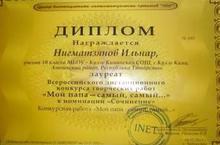 Бөтенроссия иҗади эшләр конкурсында катнашып 10 нчы класс укучысы Нигматзянов И. сочинениесе җиңү яулады(укытучысы Сафина Р.Р.)