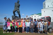 Батырларны барлыйбыз! "Бәхетле балачак" лагере балалары М.Җәлил һәйкәле янында. 18.06.2014