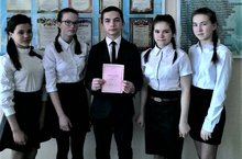 14.02.2018. Юнармия оешмасының "Сокол" отряды районкүләмендә үткәрелгән "Славные страниөы военной истории" дигән темада викторинада уңышлы чыгыш ясап, сертификатка ия булдылар. Аларны котлыйбыз! Киләчәктә уңышлар телибез.