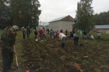 Елдагыча укучылар һәм укытучылар тырышлыгы белән үстерелгән бәрәңгедән, мул уңыш җыеп алынды.