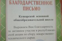 Учащиеся нашей школы награждены благодарственным письмом МКУ " Отдела образования" за активное участие в республиканской акции по сбору лекарственно- технического сырья.