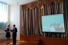Сегодня учащиеся 6 класса Садретдинов И., Юсупова И., Сафаров Ф.-7 кл. приняли участие в защите проектов посвщённых 76 летию Великой Победы